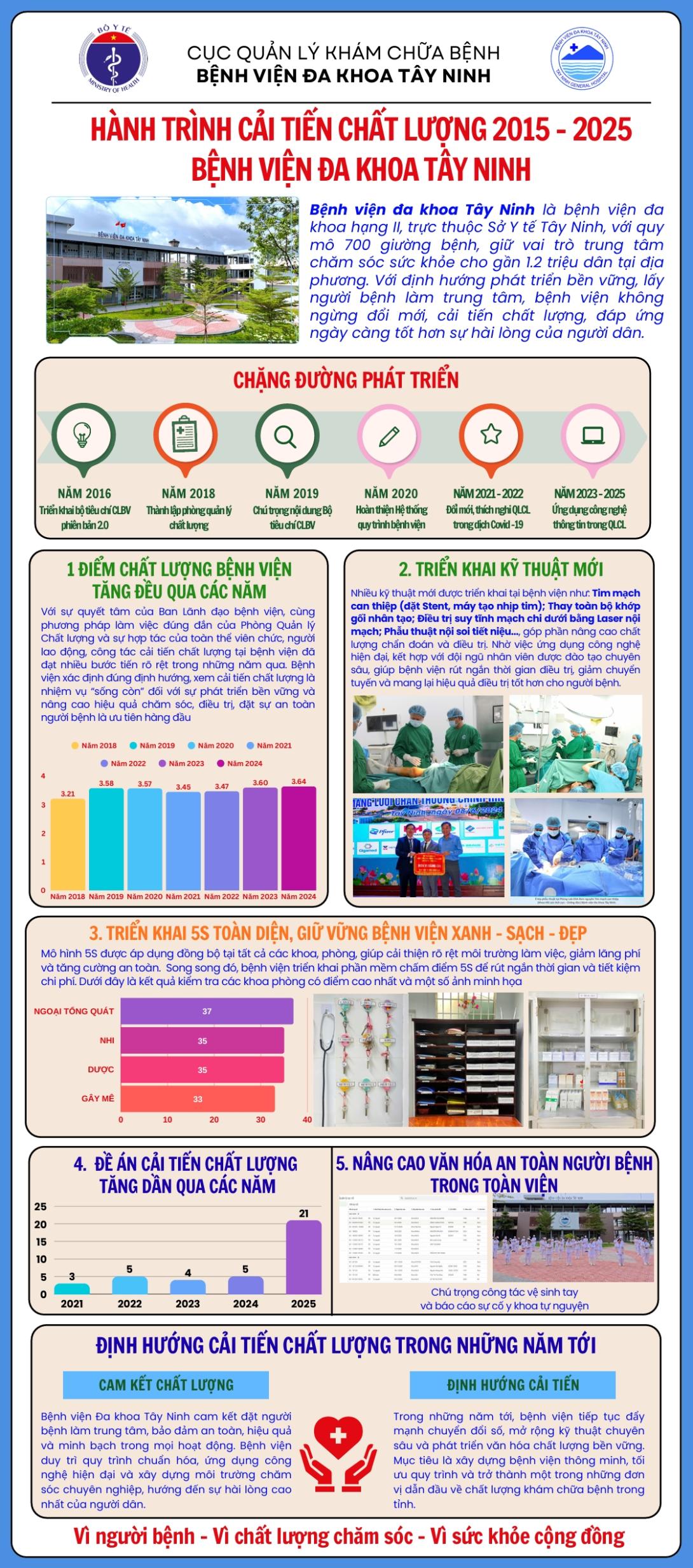 Hành trình 10 năm cải tiến chất lượng của Bệnh viện Đa khoa Tây Ninh thể hiện quyết tâm nâng cao chất lượng dịch vụ, phát triển kỹ thuật và đảm bảo an toàn cho người bệnh. Với phương châm: