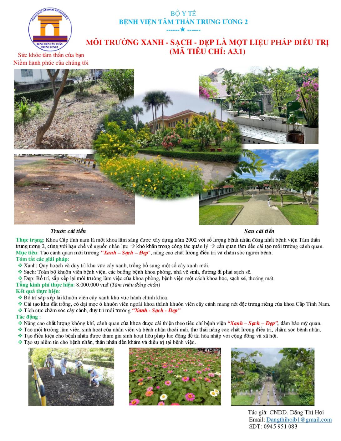 - Cải tạo khu đất trồng, cỏ dại mọc ở khuôn viên ngoài khoa thành khuôn viên cây cảnh mang nét đặc trưng riêng của khoa Cấp Tính Nam.