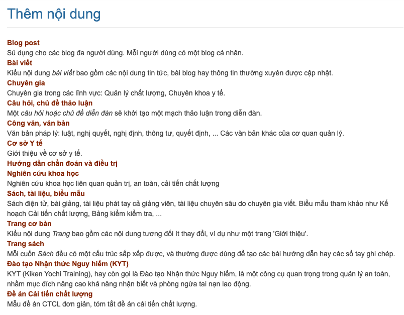 Đối với cộng tác viên, quản trị nội dung có thêm quyền đưa tài liệu vào trong 1 cấu súc sách. Như tên gọi, cấu trúc sách giúp tổ chức các tài liệu liên quan, đặt với nhau một cách có hệ thống. Điều này giúp người đọc học, tra cứu tốt hơn.