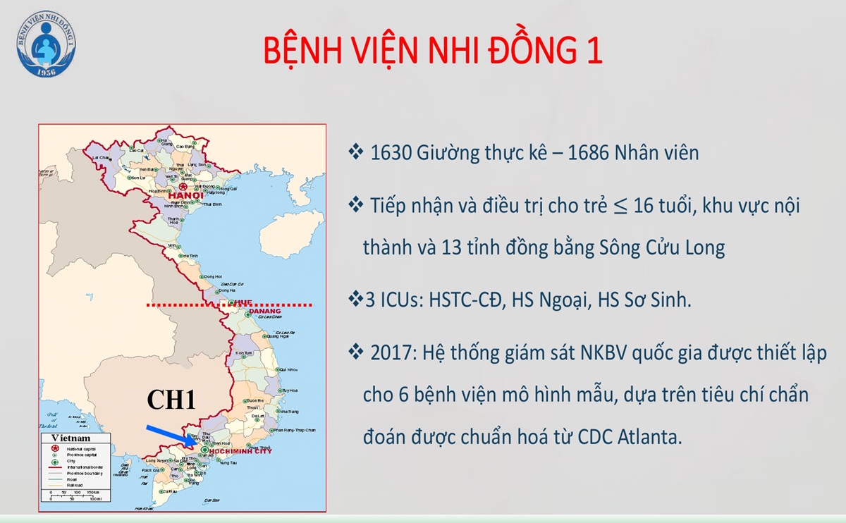 Tại Bệnh viện Nhi Đồng 1 – một bệnh viện chuyên khoa nhi với hơn 1.600 giường bệnh và ba khoa hồi sức (Hồi sức tích cực – chống độc, Hồi sức ngoại, Hồi sức sơ sinh), CLABSI là vấn đề ưu tiên cần kiểm soát. Từ năm 2017, bệnh viện tham gia hệ thống giám sát nhiễm khuẩn bệnh viện quốc gia với tiêu chí chẩn đoán được chuẩn hóa theo CDC Hoa Kỳ.