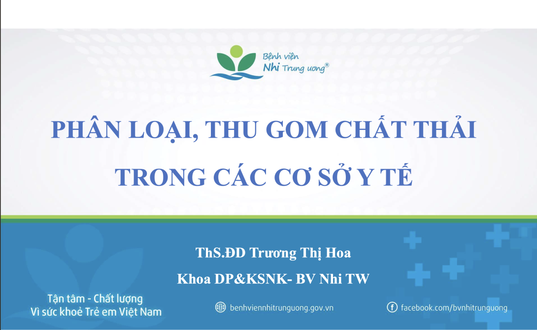 Bài giảng “Phân loại, thu gom chất thải trong các cơ sở y tế” giúp học viên: