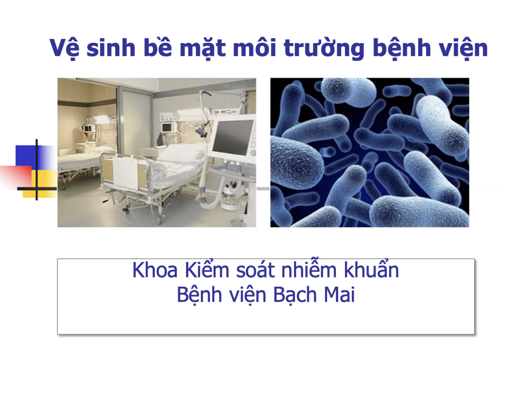 Tài liệu “Vệ sinh bề mặt môi trường bệnh viện” là một bài giảng chuyên sâu thuộc lĩnh vực Kiểm soát nhiễm khuẩn, được biên soạn nhằm chuẩn hóa kiến thức và kỹ năng thực hành vệ sinh môi trường cho nhân viên y tế và nhân viên vệ sinh trong bệnh viện. Nội dung tập trung vào các nguyên lý cốt lõi của làm sạch – khử khuẩn môi trường, phân loại bề mặt – khu vực nguy cơ, lựa chọn hóa chất, quy trình kỹ thuật, giám sát chất lượng và yêu cầu thực hiện trong các khu vực đặc thù như phòng mổ và khu cách ly.