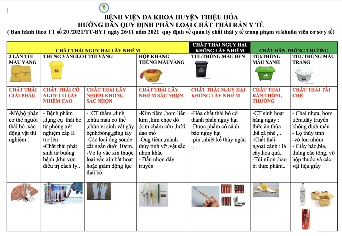 Trong công tác kiểm soát nhiễm khuẩn bệnh viện, quản lý và xử lý chất thải y tế luôn là một khâu quan trọng, trực tiếp ảnh hưởng đến an toàn người bệnh, nhân viên y tế và môi trường xung quanh. Bộ Y tế đã ban hành Thông tư số 20/2021/TT-BYT ngày 26/11/2021 quy định về quản lý chất thải y tế trong phạm vi khuôn viên cơ sở y tế.