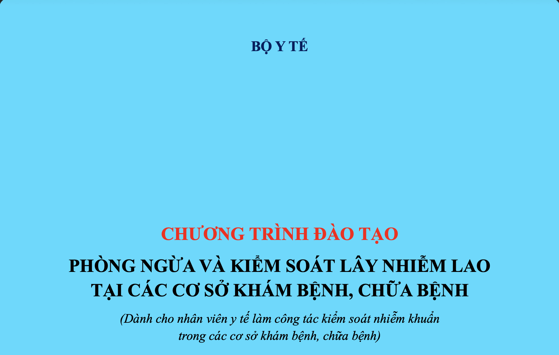 Tài liệu “Chương trình đào tạo phòng ngừa và kiểm soát lây nhiễm lao tại cơ sở khám bệnh, chữa bệnh” (Bộ Y tế, 2025) được thiết kế dành riêng cho nhân viên y tế làm công tác KSNK, giúp nâng cao năng lực và thực hành phòng chống lây truyền lao.