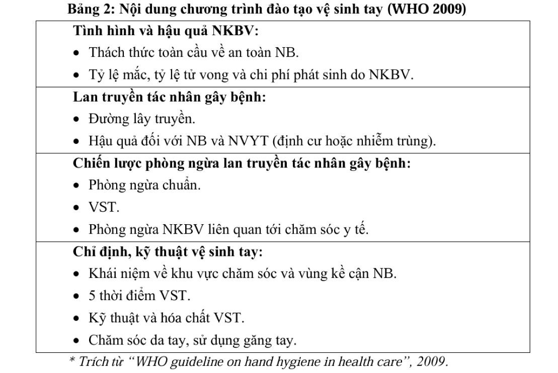 Nhân viên y tế phải được đào tạo định kỳ về vệ sinh tay.