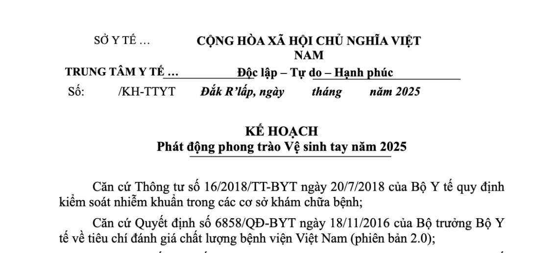 Vệ sinh tay là biện pháp đơn giản, hiệu quả và ít tốn kém nhất trong phòng ngừa nhiễm khuẩn bệnh viện. Hưởng ứng Ngày Vệ sinh tay Thế giới 05/5/2025, Trung tâm Y tế đã xây dựng và ban hành “Kế hoạch phát động phong trào Vệ sinh tay năm 2025” nhằm nâng cao nhận thức và thúc đẩy thực hành vệ sinh tay trong toàn đơn vị.