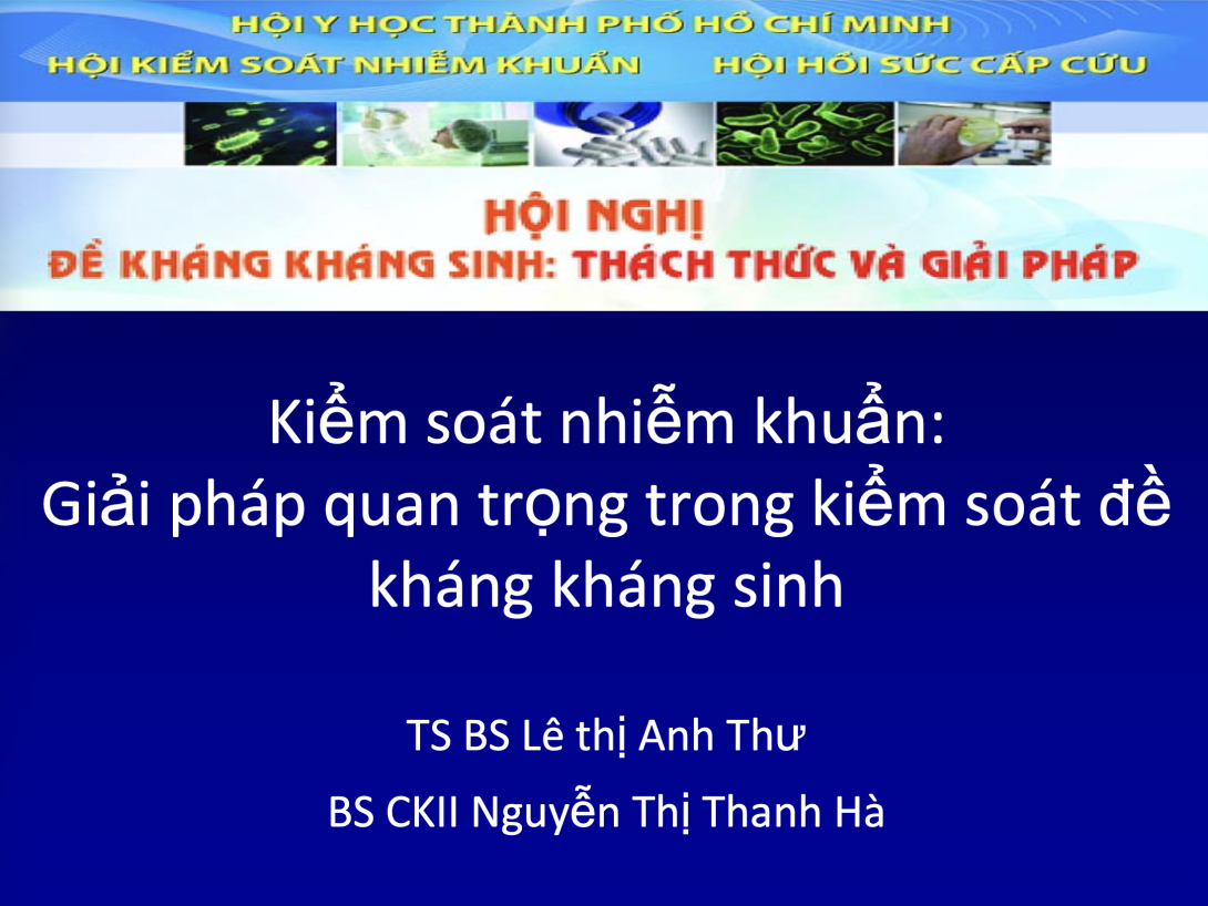 Tài liệu được trình bày tại Hội nghị Đề kháng kháng sinh: Thách thức và giải pháp do Hội Y học TP. Hồ Chí Minh, Hội Hồi sức cấp cứu và Hội Kiểm soát nhiễm khuẩn tổ chức.