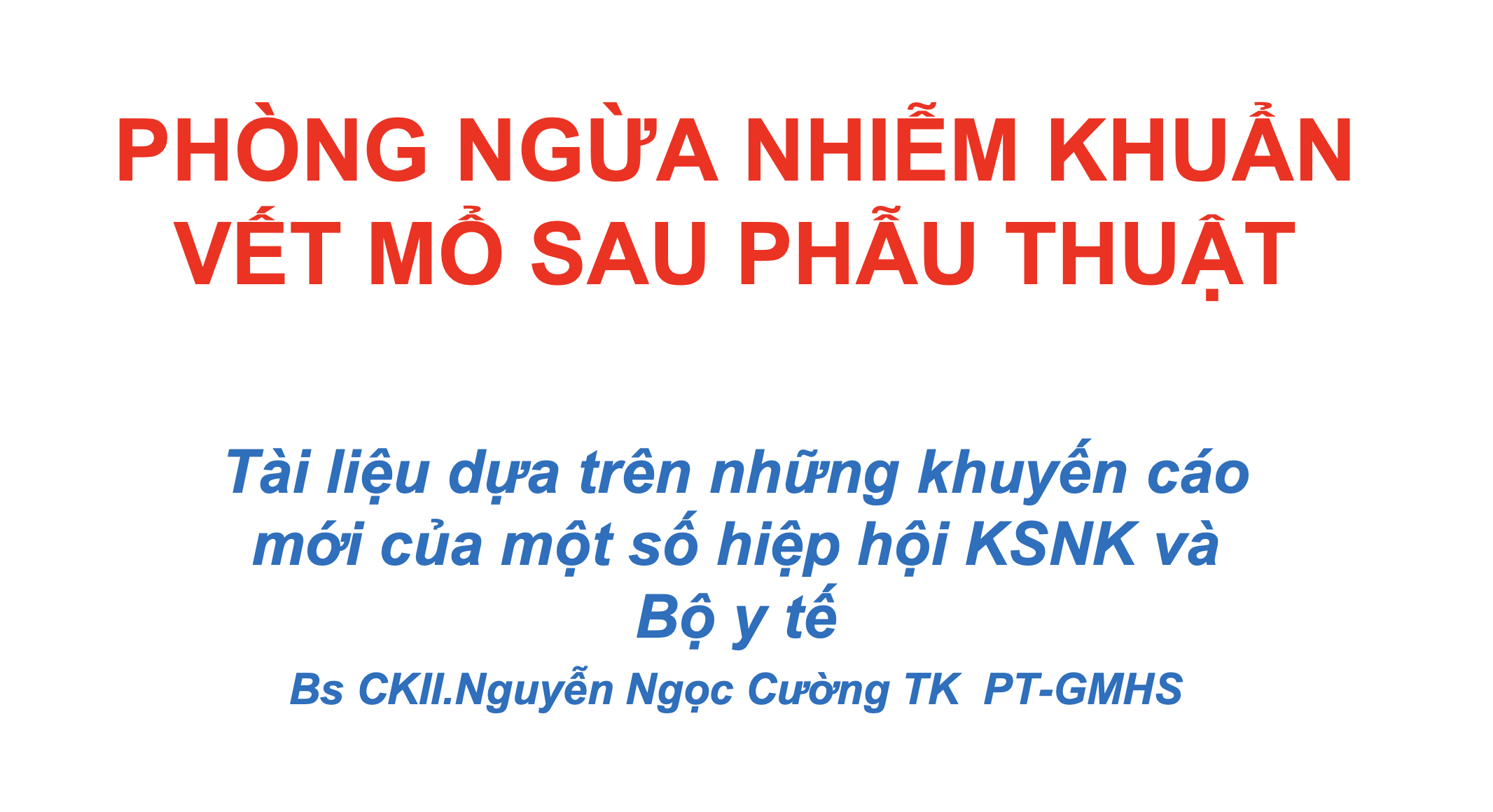 Nhiễm khuẩn vết mổ (NKVM) là một trong những biến chứng thường gặp và nghiêm trọng sau phẫu thuật, làm kéo dài thời gian nằm viện, tăng chi phí điều trị và nguy cơ tử vong. Vì vậy, việc xây dựng và thực hiện các biện pháp phòng ngừa NKVM là yêu cầu bắt buộc trong mọi bệnh viện.