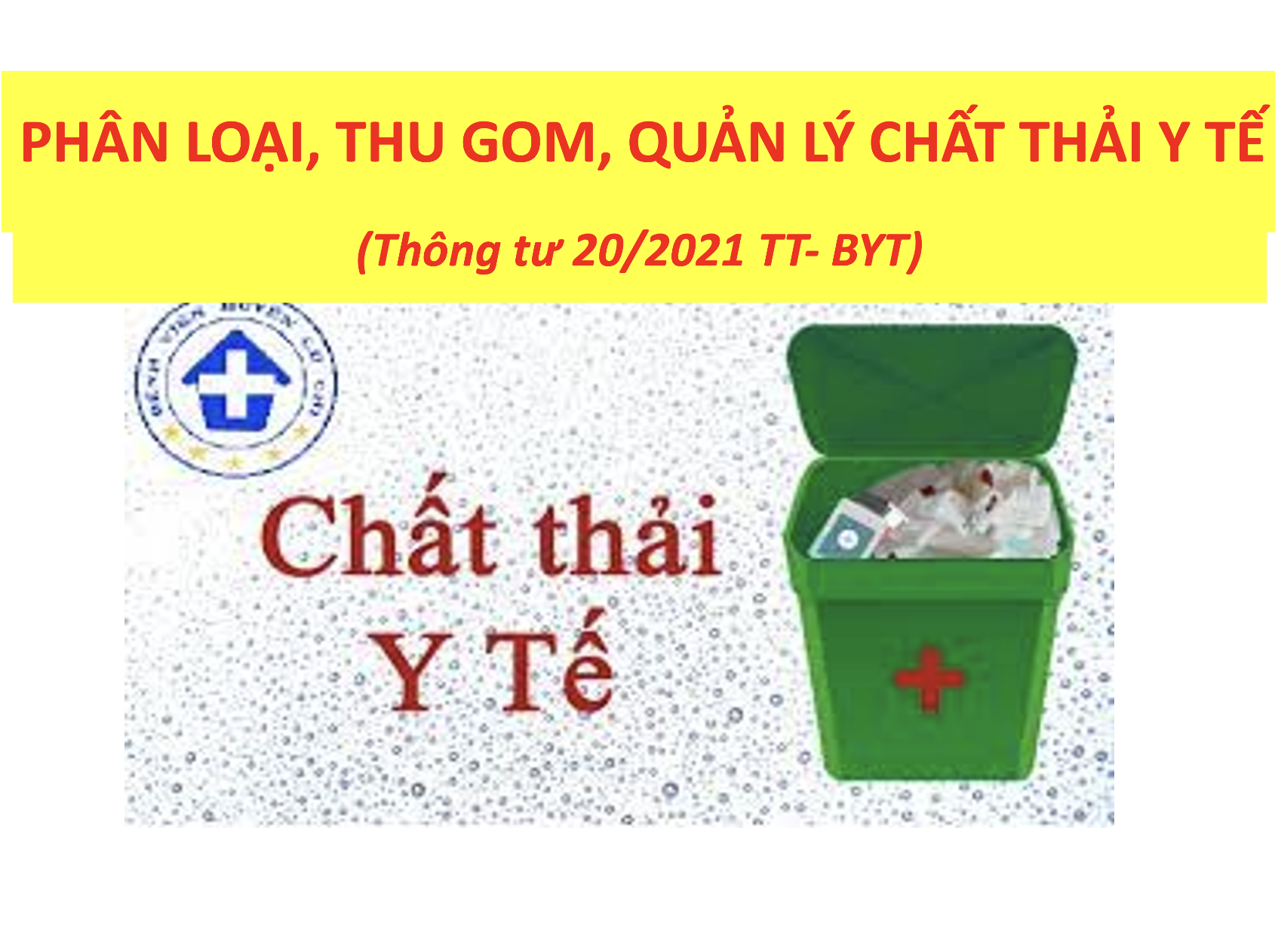 Ngày 26/11/2021, Bộ Y tế ban hành Thông tư số 20/2021/TT-BYT quy định về quản lý chất thải y tế trong phạm vi khuôn viên cơ sở y tế. Thông tư có hiệu lực từ ngày 10/01/2022, thay thế Thông tư số 58/2015/TTLT-BYT-BTNMT, nhằm chuẩn hóa các quy trình phân loại, thu gom, lưu giữ, vận chuyển và xử lý chất thải y tế.