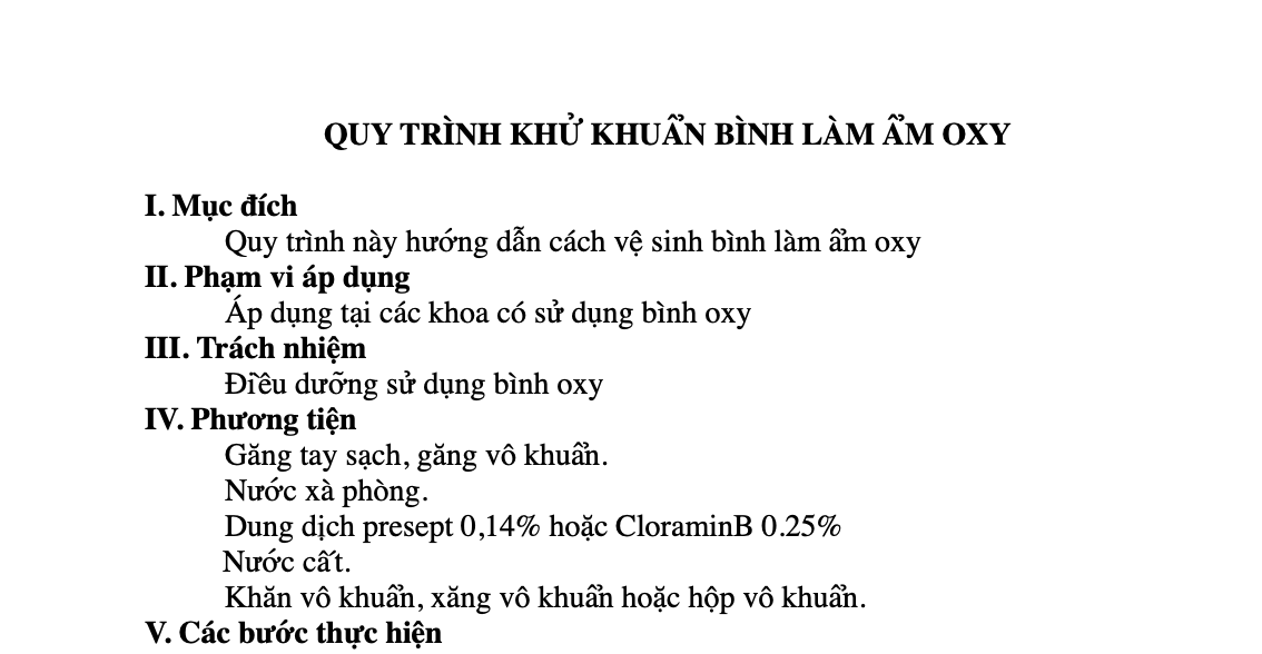 👉 Đây là tài liệu thực hành quan trọng, cần được phổ biến tới tất cả điều dưỡng và nhân viên y tế sử dụng thiết bị hô hấp, đồng thời niêm yết tại các phòng trực, khu xử lý dụng cụ để bảo đảm tuân thủ đúng quy trình.