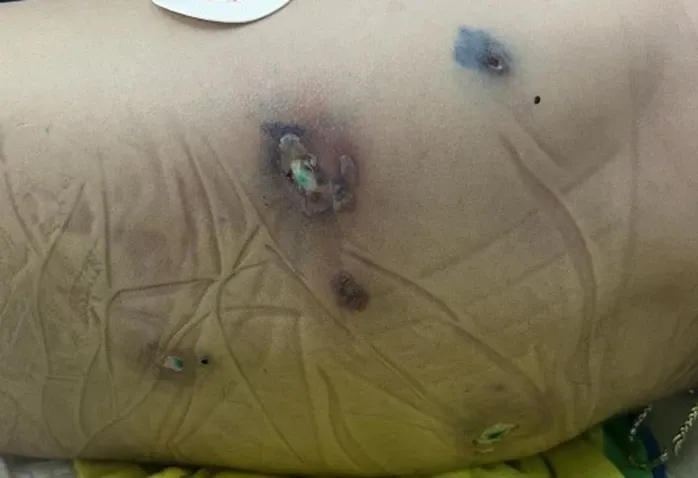 "Các vết loét tăng, xuất hiện nhiều nốt mới, bệnh nhân nguy cơ tử vong cao, sốc nhiễm khuẩn rất nặng và gần như kháng tất cả phương pháp điều trị thông thường. Bệnh nhi nhanh chóng rơi vào tình trạng suy hô hấp, sốc nhiễm khuẩn nặng, phổi mờ lan tỏa, mạch nhanh, huyết áp tụt, phải phối hợp 2 loại thuốc vận mạch nhưng huyết áp tiếp tục giảm mạnh" - bác sĩ Hiếu nói.