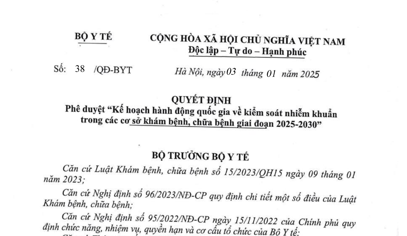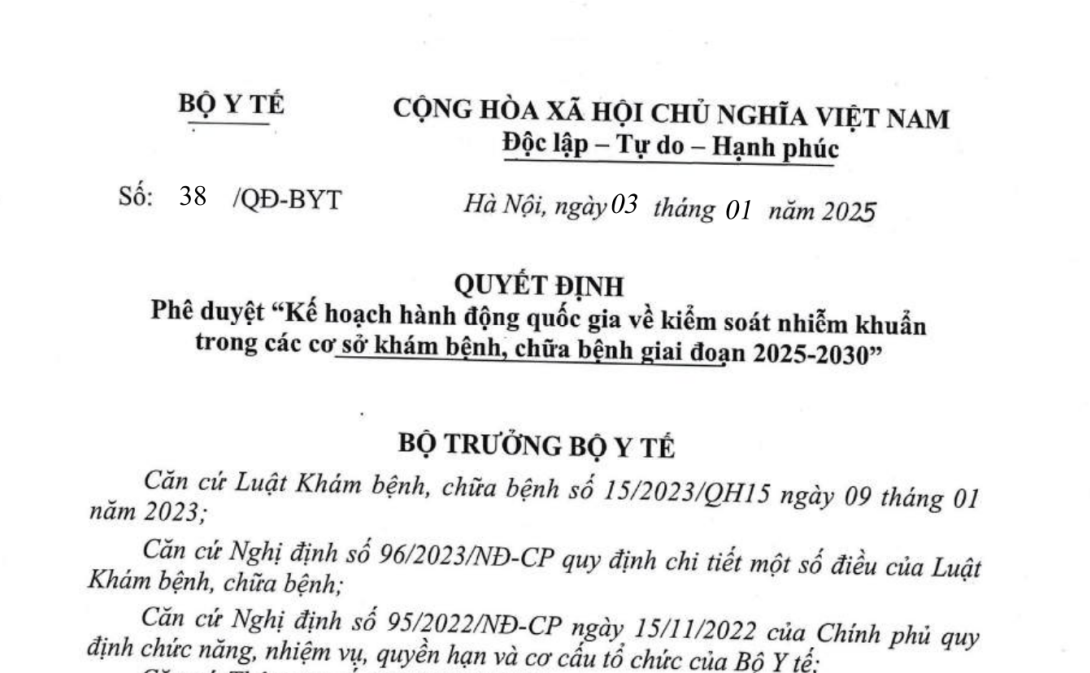 PHÊ DUYỆT “KẾ HOẠCH HÀNH ĐỘNG QUỐC GIA VỀ KIỂM SOÁT NHIỄM KHUẨN TRONG CÁC CƠ SỞ KHÁM BỆNH, CHỮA BỆNH GIAI ĐOẠN 2025-2030”